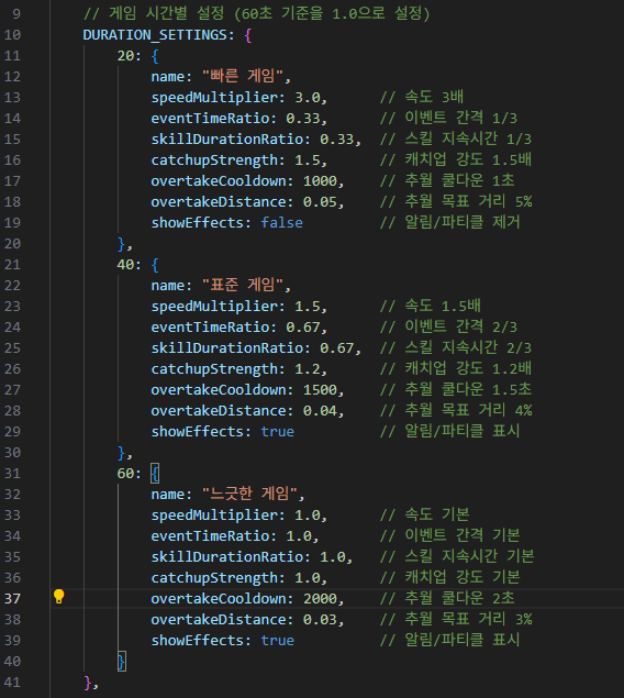 - 20초 (추천): 빠르고 스릴 넘치는 게임