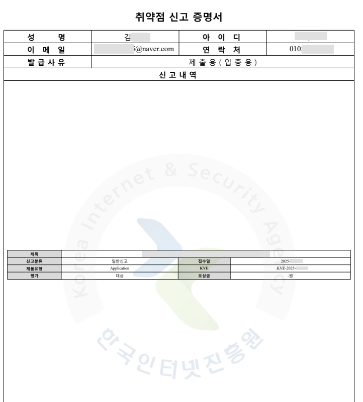 | [KVE 발급 #1] 국내 주요 기업 모바일 앱 API 취약점 발견기 (5) | 2025.08.05 |